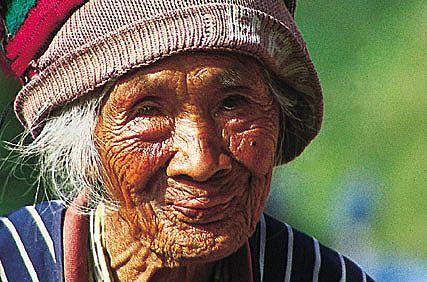 Sacrificed animals'skulls on a traditional Ifugao house |